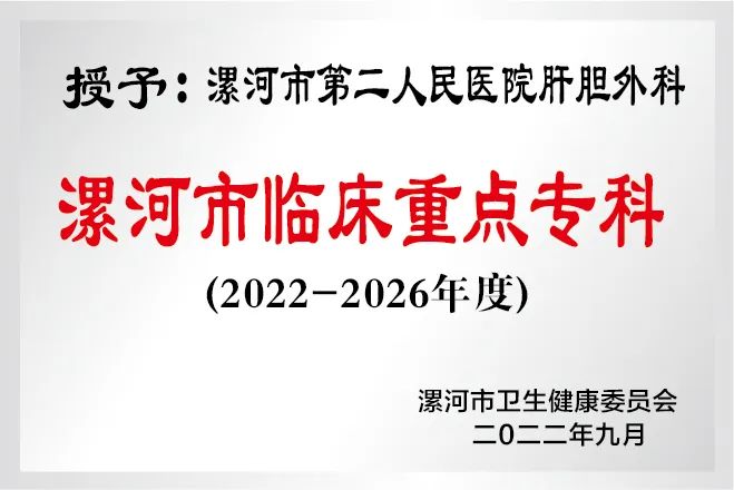 漯河市第二人民醫(yī)院普外科含肝膽外科、燒傷科、泌尿外科、微創(chuàng)外科、普外科。其中肝膽外科為漯河市醫(yī)學(xué)重點(diǎn)???,擁有普通病床46張,重癥監(jiān)護(hù)病床5張,該科技術(shù)力量雄厚,現(xiàn)有主任醫(yī)師3人,副主任醫(yī)師2人,住院醫(yī)師3人,副主任護(hù)師1人,其中碩士研究生2名。科室先后榮獲河南省衛(wèi)生廳科技成果獎4項(xiàng),漯河市科技成果獎30余項(xiàng),其中一等獎8項(xiàng)。分別和火箭軍總醫(yī)院、上海東方肝膽外科醫(yī)院、河南省人民醫(yī)院肝膽外科等建立診療聯(lián)盟單位,定期邀請知名專家來院義診及手術(shù),能為漯河市及周邊地區(qū)的病人提供優(yōu)質(zhì)的醫(yī)療服務(wù)。