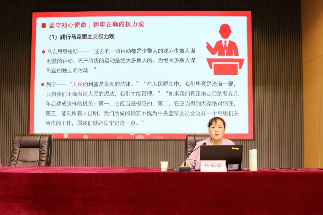 楊琳瑜以《鍥而不舍落實(shí)中央八項(xiàng)規(guī)定精神 牢固樹立正確的權(quán)力觀政績觀事業(yè)觀》為題,從堅(jiān)守初心使命,樹牢正確的權(quán)力觀;堅(jiān)持為民造福,樹牢正確的政績觀;堅(jiān)定實(shí)干擔(dān)當(dāng),樹牢正確的事業(yè)觀三個(gè)方面,為與會(huì)人員帶來了一場(chǎng)既有理論高度又有實(shí)踐指導(dǎo)意義的專題輔導(dǎo)。