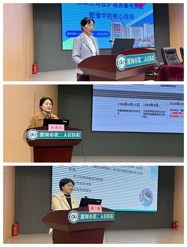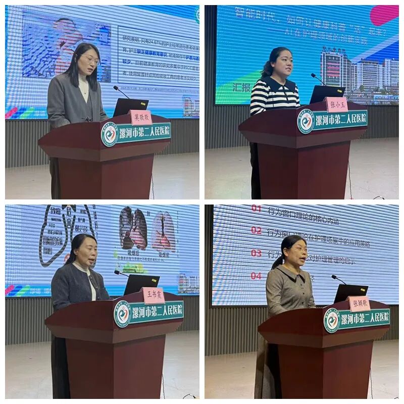 在學術(shù)交流環(huán)節(jié),多位護理專家圍繞健康教育的新理念、新方法與新技術(shù)展開深入探討。市二院護理部主任高凱霞分享了《健康教育在護理質(zhì)量與安全管理中的核心作用》;市中心醫(yī)院護理部副主任劉素紅講解了《基于賦能理論構(gòu)建三級醫(yī)院健康教育護士健康素養(yǎng)提升路徑》;市六院護理部副主任崔臻以《賦能·融合——構(gòu)建新時代醫(yī)院護理健康教育體系的實踐與思考》為題進行交流;臨潁縣人民醫(yī)院護理部副主任張潁歌介紹了《基于行為窗口理論的護士高效能溝通技巧》;市二院普外科護士長王書霞圍繞《腫瘤患者營養(yǎng)與身心健康:吃出健康,動出活力》展開講解;麻醉手術(shù)部副護士長莫敬敬探討了《基于指南的靜脈治療健康教育及溝通模式》;小兒外科骨干護士張小玉則就《智能時代,如何讓健康科普“活”起來?——AI在護理領(lǐng)域的創(chuàng)新實踐》進行分享。專家們結(jié)合臨床實例,展示了健康教育的最新成果與實踐經(jīng)驗,內(nèi)容充實,視角多元,為參會者帶來深刻啟發(fā)。