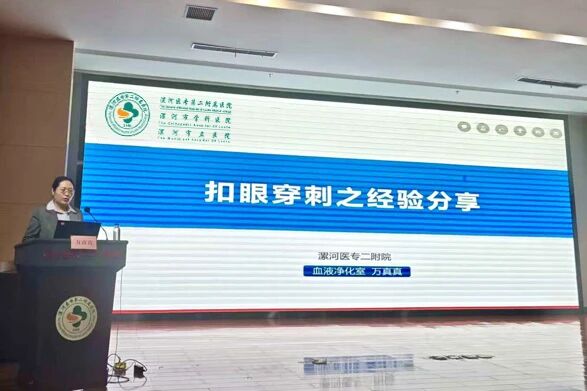 漯河醫(yī)專二附院血液凈化室骨干萬真真以《扣眼穿刺之經驗分享》為題,結合實際案例,細致講解了扣眼穿刺技術的操作要點、隧道建立的技巧、日常維護的注意事項以及常見問題,為降低患者穿刺痛苦提供了寶貴的經驗。由郾城區(qū)中醫(yī)院血液凈化室護士長楚方圓與召陵區(qū)中醫(yī)院血液凈化室護士長曹冬曉主持會議。
