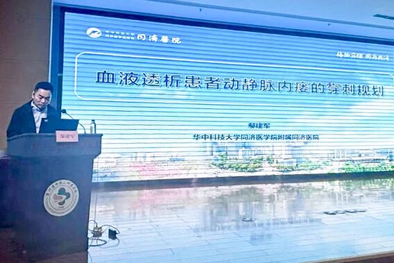 會議特邀湖北省護理學會血液凈化護理專業(yè)委員會主任委員,華中科技大學同濟醫(yī)院血液凈化室護士長鄢建軍圍繞《血液透析患者動靜脈內瘺的穿刺規(guī)劃》,系統(tǒng)闡述了如何從血管評估、穿刺點選擇、到長期穿刺方案的制定,通過科學的規(guī)劃最大限度地保護血管,為延長患者“生命線”的壽命奠定了堅實基礎。由漯河市中心醫(yī)院血液凈化室護士長周瑾與郾城區(qū)人民醫(yī)院血液凈化室護士長張娟主持會議。