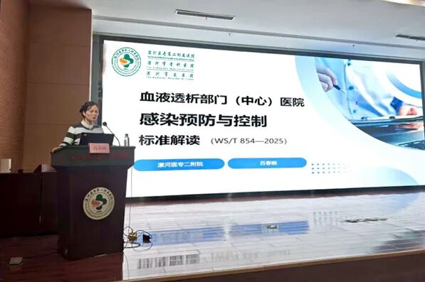 規(guī)范與賦能并重,夯實安全基石。 在質量安全層面,漯河醫(yī)專二附院血液凈化室護士長呂春曉對《血液透析部門(中心)醫(yī)院感染預防與控制標準》進行了權威解讀,從建筑布局、人員管理、操作流程、監(jiān)測要求等多個方面,深入講解了標準的核心要點,為各醫(yī)療機構落實規(guī)范化管理、確?;颊甙踩峁┝艘罁?。由漯河市婦幼保健院血液凈化室護士長劉曉靜與臨潁縣人民醫(yī)院血液凈化室護士長陳曉夢主持會議。