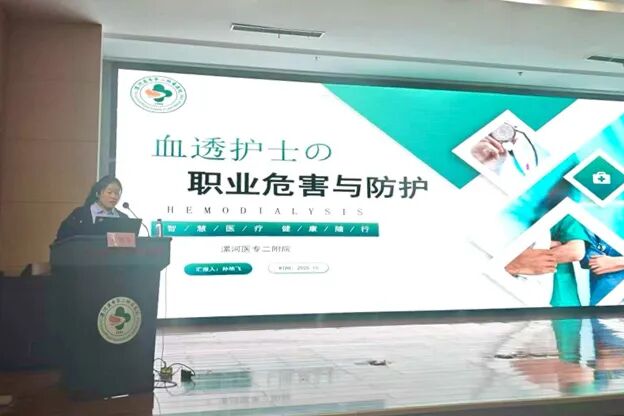 漯河醫(yī)專二附院血液凈化室骨干孫艷飛圍繞《血透護士的職業(yè)危害與防護》展開講解,從各個層面系統(tǒng)梳理了血透護士面臨的職業(yè)風險,并提出了具體、可行的防護措施與建議,呼吁在全力關愛患者的同時,務必重視自身的職業(yè)安全與身心健康,體現了深刻的人文關懷精神和團隊管理智慧。由臨潁縣中醫(yī)院血液凈化室護士長陳莉與舞陽縣中醫(yī)院血液凈化室護士長張銳主持會議。