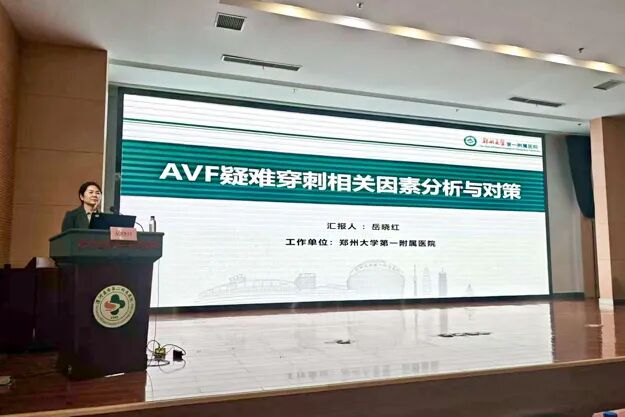 中華護理學會血液凈化專業(yè)委員會委員、鄭州大學第一附屬醫(yī)院血液凈化中心護士長岳曉紅以《AVF疑難穿刺相關因素分析與對策》為題,從精準評估、穿刺、超聲輔助、團隊協(xié)作幾個方面,分析了動靜脈內瘺穿刺困難的各類因素,分享了一系列實用、有效的解決方案。由漯河市第二人民醫(yī)院血液凈化室護士長朱潔與舞陽縣人民醫(yī)院血液凈化室護士長苗保紅主持會議。