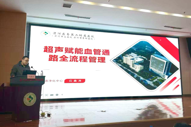 漯河醫(yī)專二附院主治醫(yī)師應鑫濤分享了《超聲賦能下血管通路全流程管理》。他詳細介紹了如何將超聲技術應用于內瘺的術前評估、術后監(jiān)測、穿刺引導以及并發(fā)癥篩查中,展示了如何實現血管通路管理的“可視化”和“精準化”。由漯河市第六人民醫(yī)院血液凈化室護士長陳芳芳與召陵區(qū)人民醫(yī)院血液凈化室護士長梁君芳主持會議。