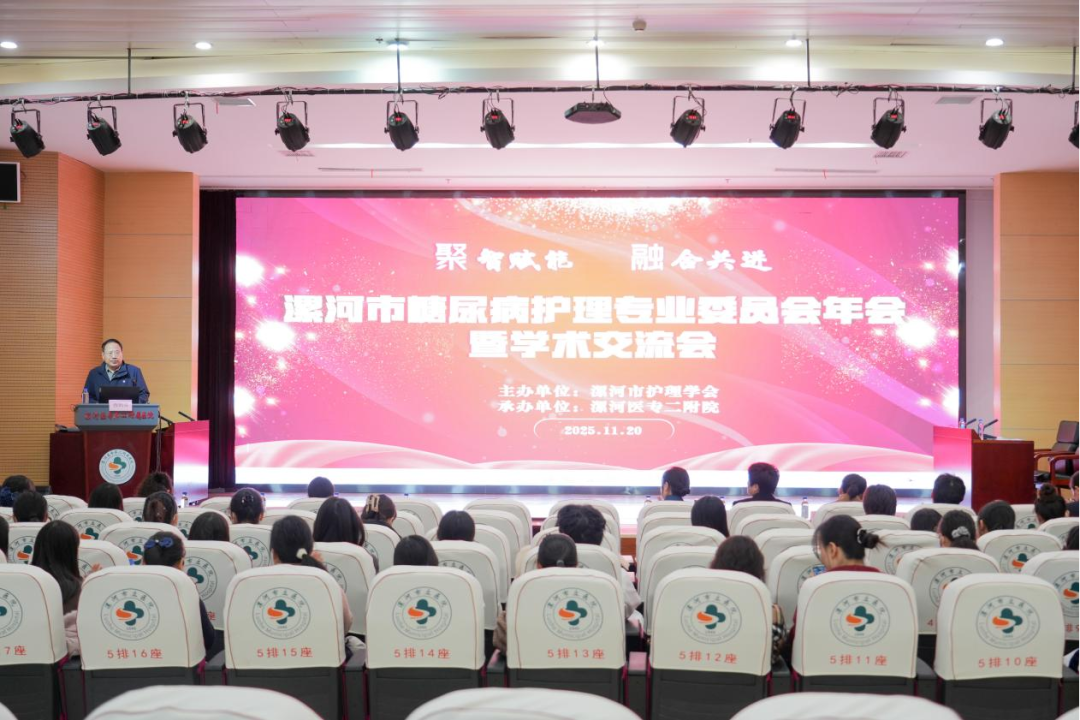 11月20日,2025年漯河市糖尿病護(hù)理專業(yè)委員會年會暨學(xué)術(shù)交流會在漯河醫(yī)專二附院舉辦。來自全市各級醫(yī)療機(jī)構(gòu)的護(hù)理骨干、專家學(xué)者共計200余人齊聚一堂,共襄學(xué)術(shù)盛宴。漯河醫(yī)專二附院副院長曹鵬克為大會致開幕辭。