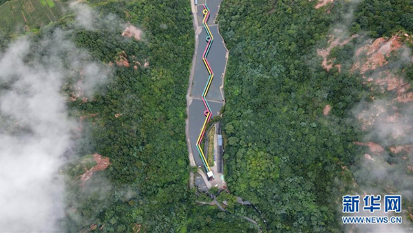 8月15日拍攝的紫金山景區(qū)內(nèi)的旅游設施(無人機照片)。 當日,位于河北省邢臺市西部太行山脈的紫金山景區(qū)云霧彌漫,美景如畫。 新華社記者 牟宇 攝